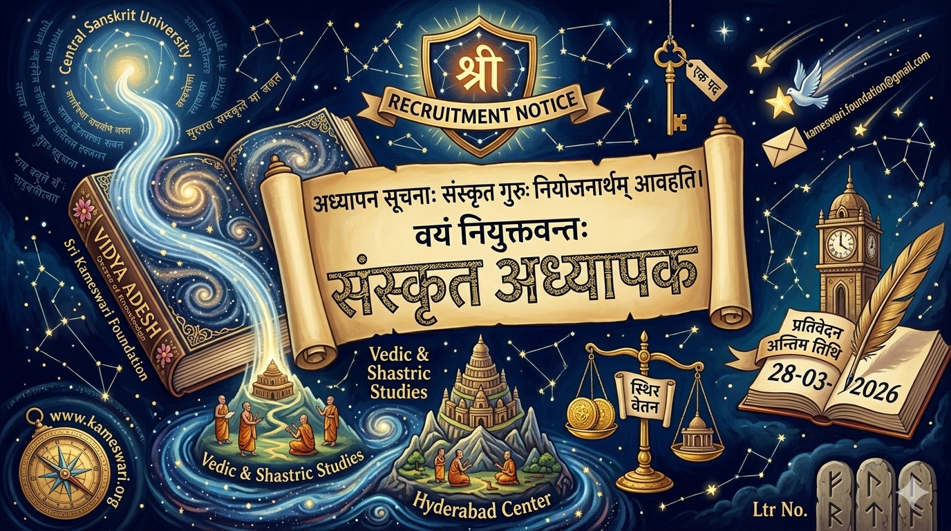 SRI KAMESWARI FOUNDATION (Running Sri Kameswari Center for Vedic & Shastric Studies, Hyderabad) Notification for Sanskrit Teacher Recruitment 21.03.2026 Ltr No. CSU/36010/1028/Telangana/S-I/2025-26/2066 Dt: 21-03-2026 Sri Kameswari Center for Vedic & Shastric Studies,Hyderabad invites applications from eligible candidates for recruitment to …